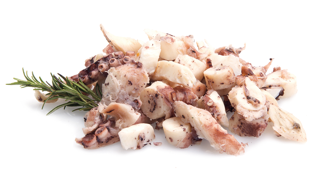 Cooked and chopped octopus